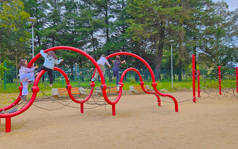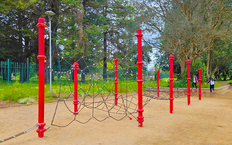 | Solución: | Urbanplay participó en el suministro e instalación de equipamiento de juego de origen Europeo, incluyendo una estructura de juego de cuerdas “Twist” de marca Berliner (Alemania), que se caracteriza por su gran durabilidad y resistencia ante todo tipo de condiciones climáticas, un factor determinante en la zona donde se encuentra emplazado, así como por su estética moderna y transparente que destaca y la vez se adapta de manera fluida con el entorno. Así mismo, se implementaron elementos de juego marca Kompan (Dinamarca) para niños pequeños, y una zona de juegos de caucho. |