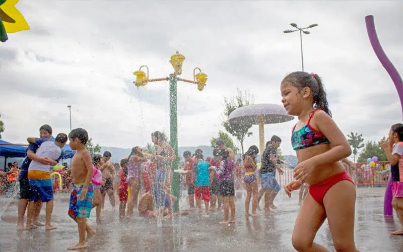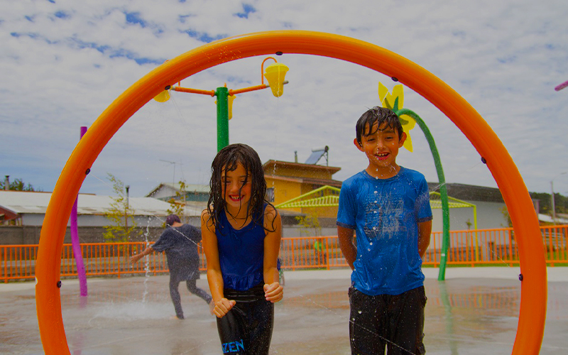 | Solución: | Urbanplay estuvo a cargo del desarrollo, diseño, suministro e instalación del proyecto de Plaza de Agua, el cuál consideró una amplia zona de juegos acuáticos marca Waterplay (Canadá) que se organizan de acuerdo al rango etario de los niños, juntando elementos de chorros de agua de gran tamaño, con surtidores de piso y actividades para los más pequeños. Además, el emplazamiento cuenta con un sistema sustentable de recirculación y filtrado de aguas, cuya operación y funcionamiento se regula de manera electrónica con paneles de control en una sala de bombas y un estanque de acumulación de agua dedicado. |